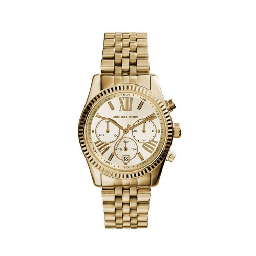 Michael Kors Lexington MK5556 women's gold-tone stainless steel chronograph watch.