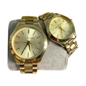 Step into sleek sophistication with the Michael Kors MK3512 couple set, featuring a radiant gold-tone finish that defines timeless elegance. Designed for couples who appreciate minimalism and luxury, this matching pair pairs clean lines with a monochromatic gold dial—perfect for elevating everyday style or making a subtle statement.