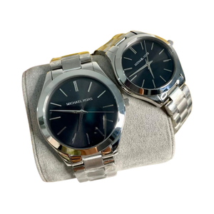 Striking, sleek, and effortlessly modern — the Michael Kors MK8836 Slim Runway couple set is the perfect match for couples who love bold, all-black style. With its silver stainless steel finish and minimalist black dial, this matching pair exudes understated luxury and contemporary elegance.