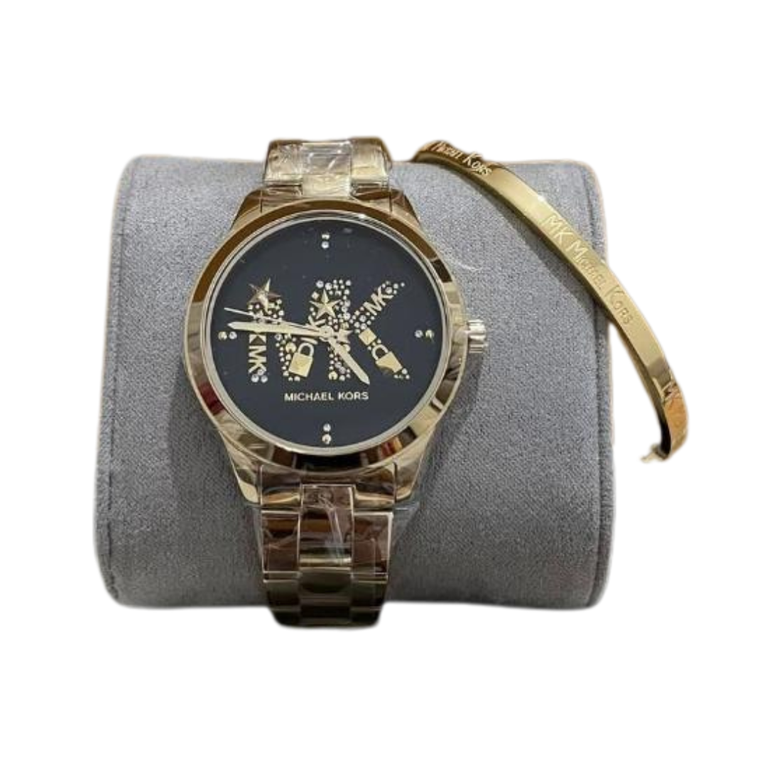 MICHAEL KORS QUARTZ STAINLESS STEEL BLACK DIAL - MK6682 ( WITH MK BANGLE )