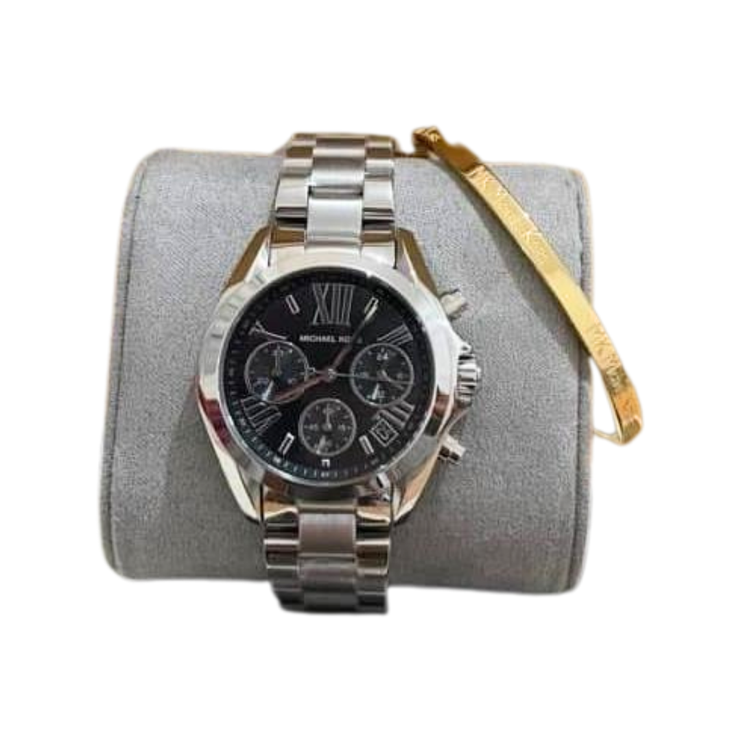 MICHAEL KORS BRADSHAW CHRONOGRAPH BLACK DIAL SILVER - MK570 ( WITH MK BANGLE )