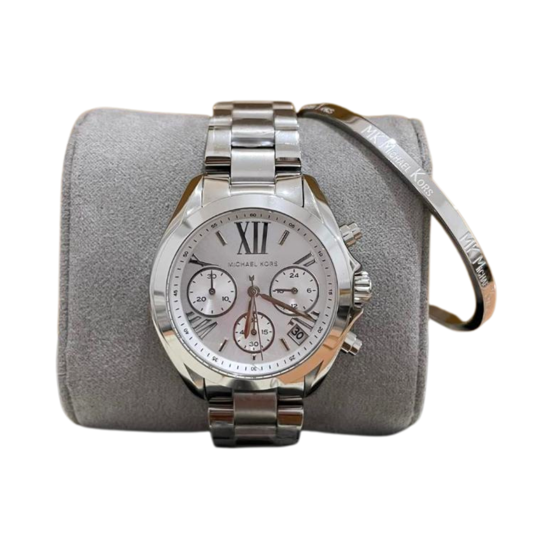 Michael Kors Mini Bradshaw Chronograph Watch - MK6174 silver tone stainless steel with bangle