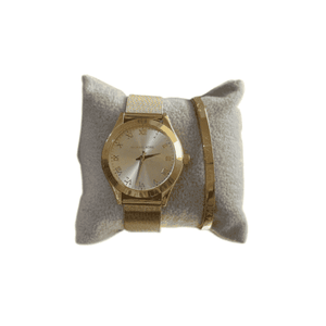 Michael Kors Slim Runway Roman Dial Mesh Gold-Tone Stainless Steel Watch – With Bangle