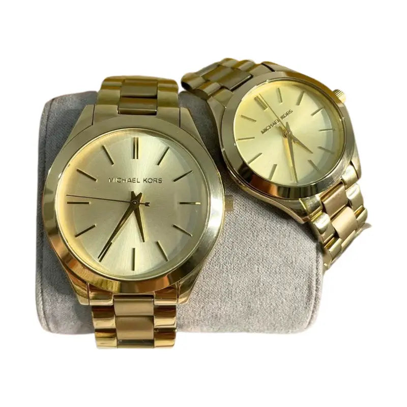MICHAEL KORS GOLD TONE STAINLESS STEEL SLIM RUNWAY GOLD DIAL MK3512 ( Couple Set )