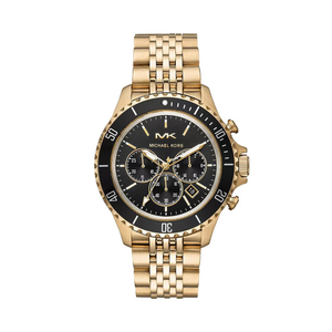 The Michael Kors MK8726 Bayville is a striking chronograph that exudes luxury and confidence. With its rich gold-tone stainless steel and bold black dial, this timepiece makes a powerful statement, perfect for men who embrace sophisticated style with a modern edge.