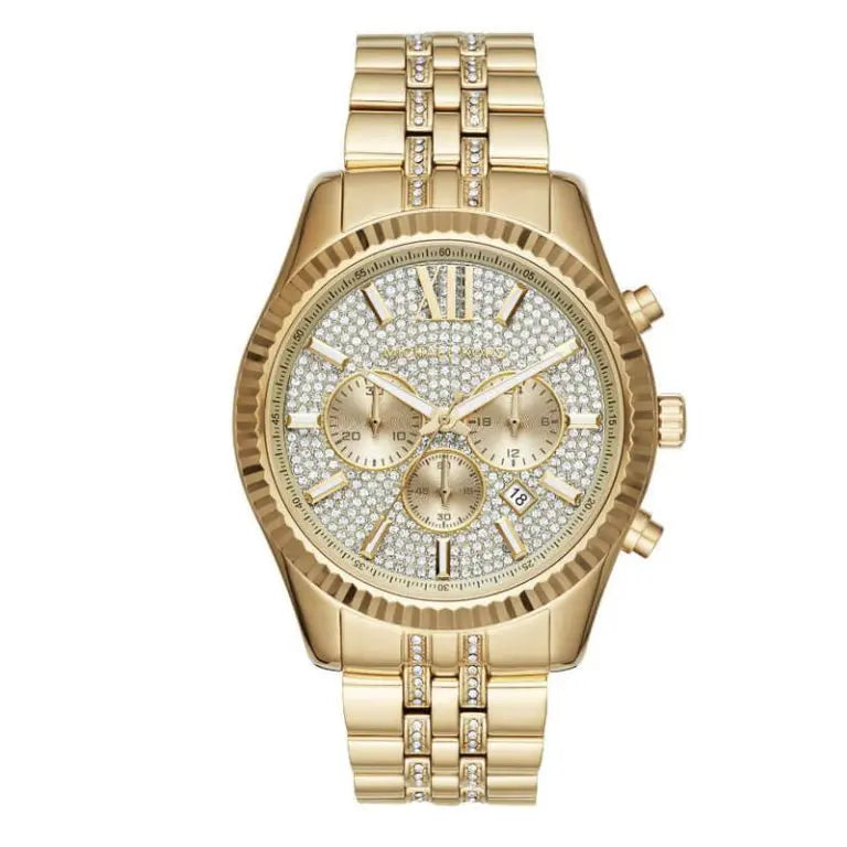 Michael Kors Lexington MK5556 women's gold-tone stainless steel chronograph watch.